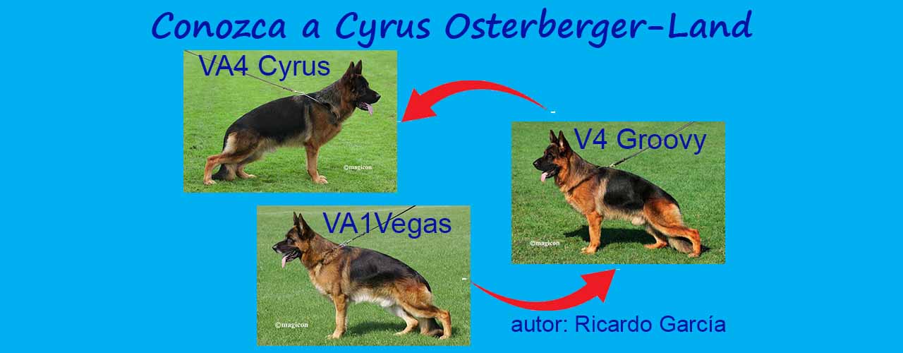 En el 1er. NKG de Cyrus se inscribieron 30 descendientes. En total 13 machos y 17 hembras resultantes de 2.2 meses de tiempo de cruzas. De los cuales se presentaron 11 machos y 13 hembras. Eso corresponde a una tasa de presentación de un 80%. El grupo muestra tipo hacía el padre con buena uniformidad. Los animales individuales son predominantemente de tamaño mediano, huesos fuertes, secos y firmes, hay pigmento intenso y equipados con una alta proporción de negro. Las cabezas son fuertes y bien formadas en su mayoría con mascara obscura y ojos obscuros así como correcta colocación de las orejas. Correcta construcción de la cruz, con buen desarrollo de la línea superior, pero también con grupas pronunciadamente inclinadas. En casos aislados el brazo superior podría ser algo más largo e inclinado. En más de unos pocos casos angulaciones traseras pronunciadas, a veces con tibias largas y corvejones no firmes. Adelante secuencia de pasos recta. La mayoría con movimiento fluido, poderoso con amplitud de paso y muy buena ganancia de terreno. Las ventajas del grupo recaen en el tamaño mediano compatible con el estándar, el buen acuse de su sexo, su buena expresión y la buena pigmentación conectado con un trote temperamental y mucho impulso para avanzar. Al reproducirse se deberá prestar atención a la firmeza de los corvejones.